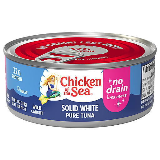 Chicken of the Sea wild caught white tuna just got even easier to love. Solid filets packed in a no-drain can mean you get all the flavor with a lot less mess. Our tuna is high in protein and features heart-healthy omegas, and vitamin D with very little fat and no carbohydrates—perfect for keto and Mediterranean diets.