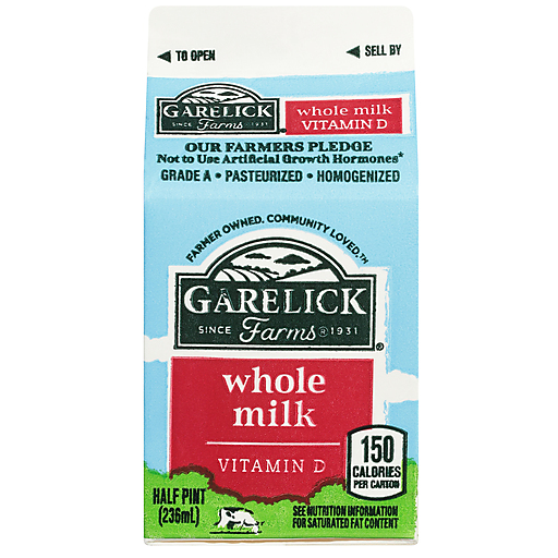 Garelick Farms Milk, Whole 0.5 pt